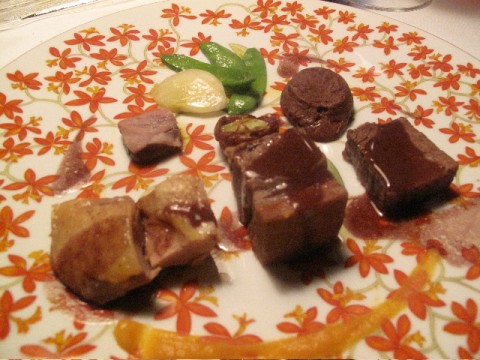 Poi avrò, io perché voi avrete solo una foto a mezzo a causa della mia ingordigia (giuro non lo farò piu): GAMBERI DI FIUME AL FOIE FRAS E MIRTILLI,TARTUFO NERO,SALSA DI SENAPE E MIRTILLI