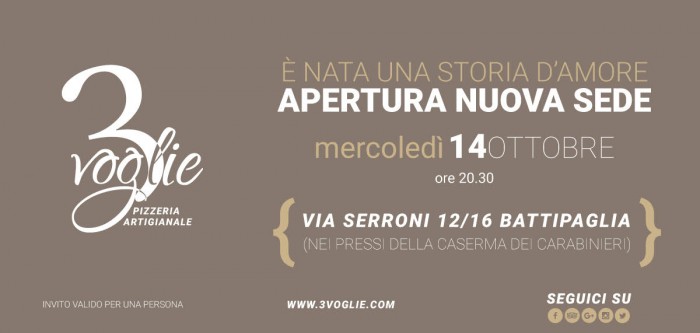 Battipaglia, 14 ottobre. Apertura della nuova sede della pizzeria 3 Voglie