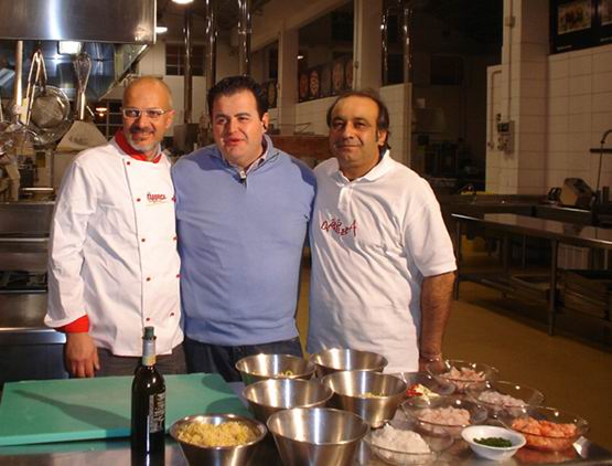 Battipaglia 27 novembre, Rossorossorosso…Piedirosso! 18/12/2008 2.7 MILA LETTURE Maurizio Somma del Papavero, Gennaro Esposito e Cosimo Mogavero nelle cucine di Fabbrica dei Sapori
