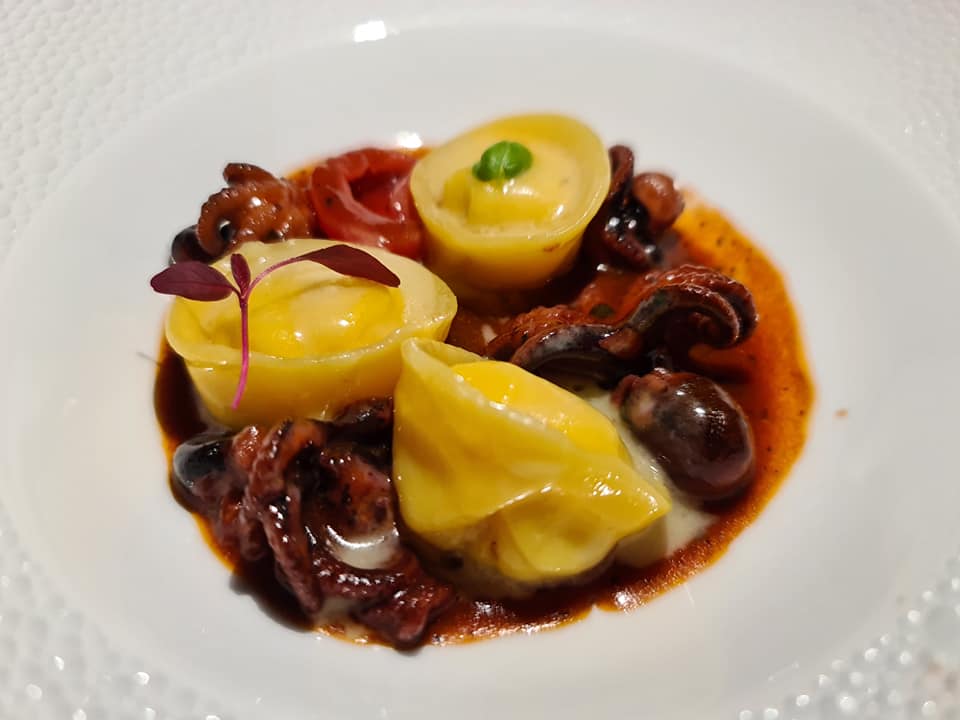 - Tortelli di ricotta al limone fatti a mano con ragù di moscardini alla Luciana