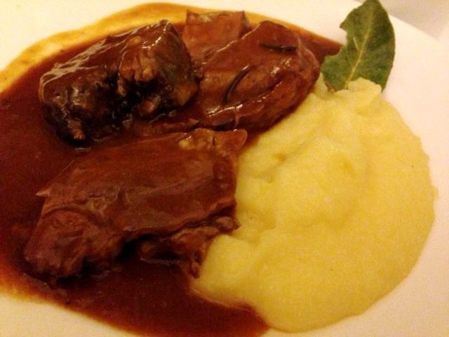 I primi sono un trionfo di sapori: dagli spaghettoni fatti a mano con crema di pistacchi e pecorino agli gnocchi sempre con tartufo bianco e all’incursione di un ottimo ragù a condire le pappardelle. E non manca il baccalà, proposto con tripoline spezzate e fagioli, conditi con vellutata di San Marzano.