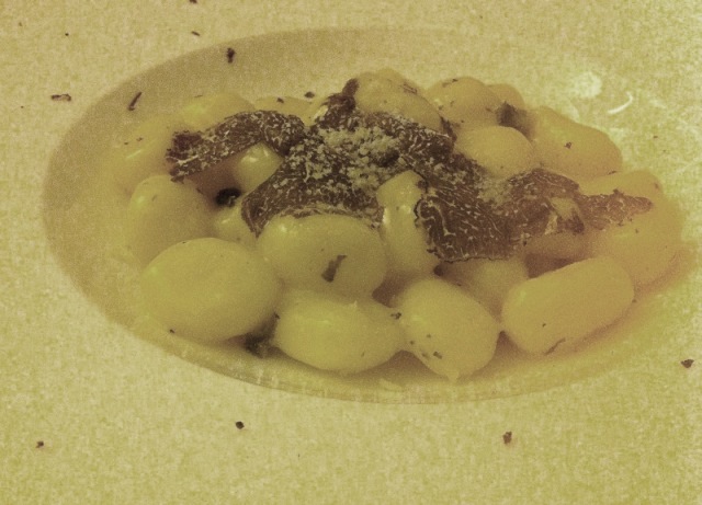 Il percorso gastronomico parla sannita, con qualche eccezionale incursione. Come nel caso dell’offerta dei salumi, dove troviamo l’imperdibile salsiccia rossa di Castelpoto (servita con miele di acacia per addomesticare la versione piccante) che ben si accompagna con la lunga stagionatura del Pata Negra de Bellota. Restando in tema antipasti, imperdibile la vellutata di finocchi, mandorle tostate e baccalà al vapore; così come si mostra interessante la mortadella artigianale alla brace con maionese rosa. Ma la carta offre ancora: dalla classica tartar di manzo alle erbe aromatiche alla burratina di vaccino con pomodorini confit e olio ravece, fino alle uova strapazzate con tartufo bianco pregiato. Il tartufo, quello trovato sulle colline che circondano Ceppaloni, risorsa sannita che finisce per diventare ricchezza piemontese: argomento che ha visto ‘don Vincenzo’ sempre in prima linea.