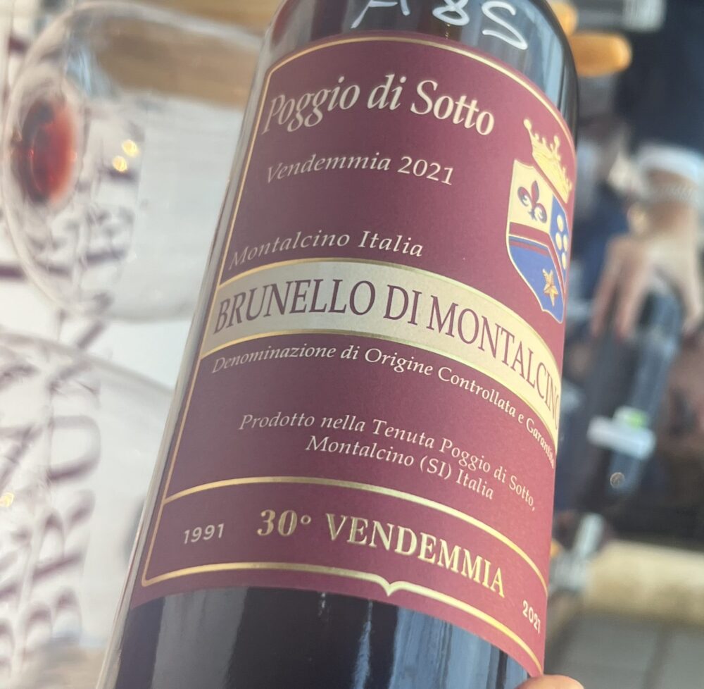 Cominciamo da un “nuovo classico” della zona di Sant’Angelo in Colle, oramai particolarmente performante in quasi tutte le annate. Lo assaggiamo prima in sala e poi in cantina di fianco alla ‘19 e alla ‘20. E si rivela più classico per austerità e dinamismo rispetto a quest’ultima annata, ma anche meno burbero e mordente dell’altra. Non è esplosivo, anzi gioca su tonalità atipicamente scure in questo momento. Ma è reattivo, energico, ben impostato e potenzialmente longevo.