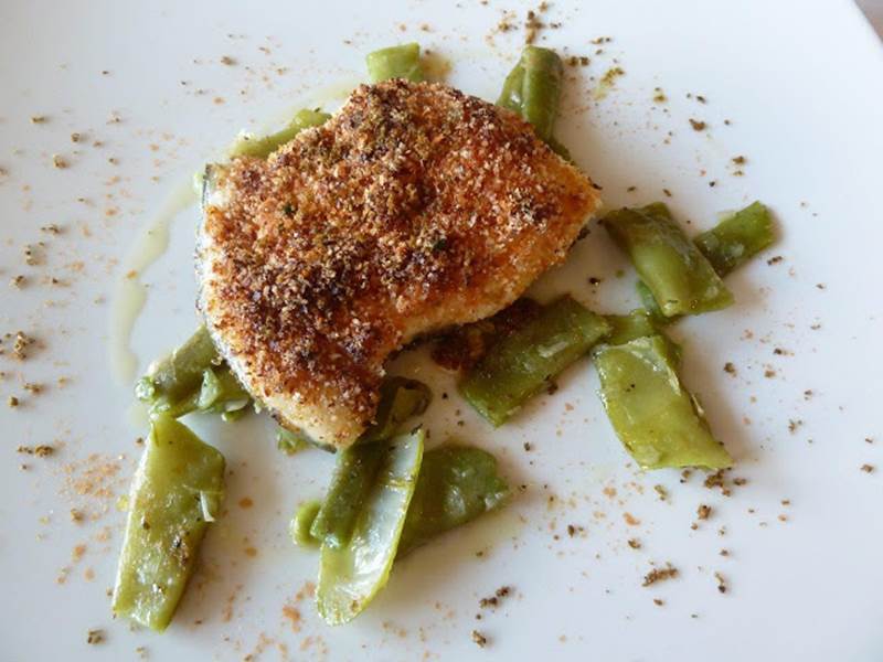 Filetto di rombo in crosta di pomodoro e polvere d’olive, esecuzione attenta, semplicità e goduria