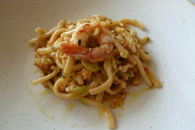Scialatielli, gamberi, cavoletti e briciole di pane tostato
