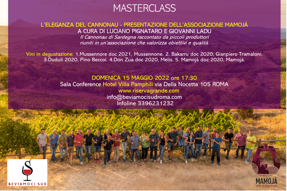 Mamojà nasce nel 2015, come unione di viticoltori mamoiadini che condividono un grande obiettivo: produrre un Cannonau di altissima qualità, che richiami al gusto e all’olfatto i sapori tipici del territorio di Mamoiada che vanta vigne che variano dai 700 agli 800 metri di altezza. Assieme a Giovanni Ladu, presidente dell’Associazione, presenteremo alla stampa e al pubblico romano il loro progetto con una degustazione imperdibile di Cannonau “di montagna”!