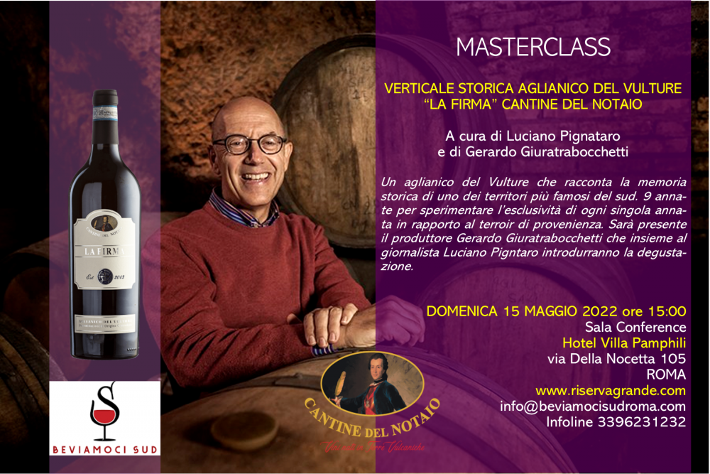Ore 15:00 – Verticale Storica Aglianico del Vulture “La Firma” Cantine del Notaio a cura di Luciano Pignataro