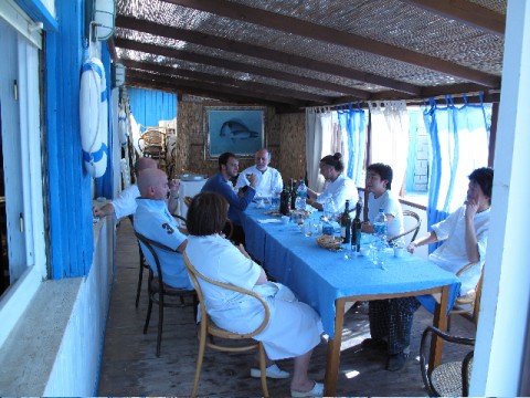 Si rientra e si da il via alla corsa. Luciano si aggira per i tavoli con gallinona spiegata e telefonino all’orecchio: pesce millenario e tecnologia moderna. Luciano, cazzo, vai in cucina a cucinare quel bendiddio !