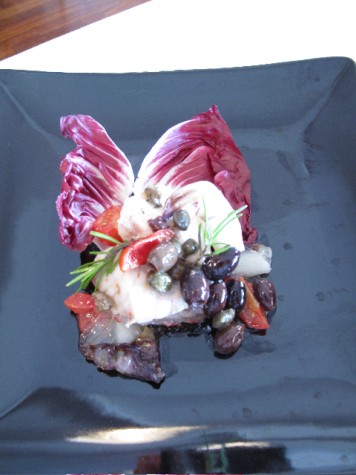 Poi un PESCE NEL TEGAME CON ROSMARINO CAPPERI ED OLIVE.