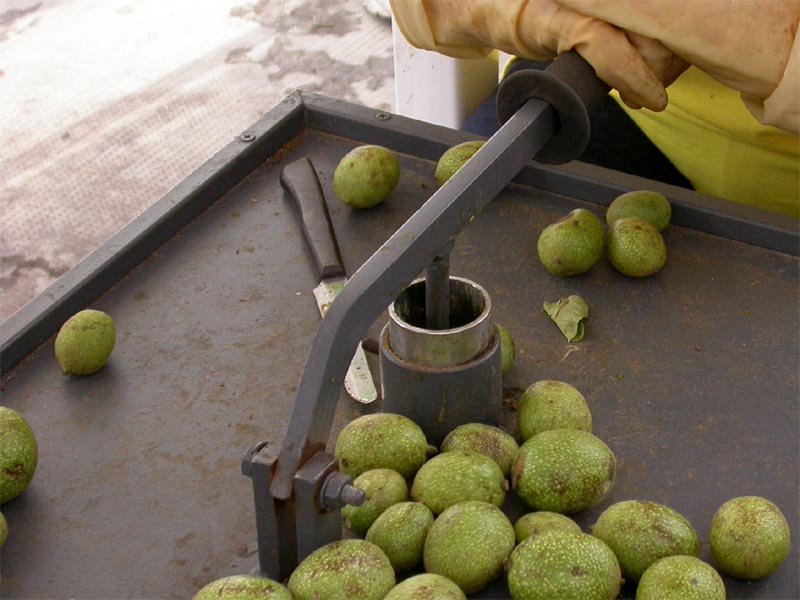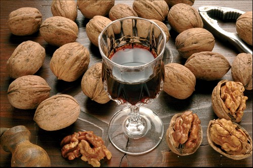 Un infuso misterioso si diceva, che nasce da un rituale quasi esoterico. Secondo la tradizione, la notte di San Giovanni, 24 giugno, le donne con lunghe scale e piccoli panieri di vimini rivestiti all’interno con tele di sacco scomparivano nel buio della campagna, per poi riunirsi sotto il noce. La più esperta, a piedi nudi , saliva sulla scala, sceglieva le noci più adatte e più integre, le toccava appena per non togliere il velo di rugiada, e le riponeva delicatamente nel paniere. Nel frattempo nell’aia erano stati accesi dei falò: qui si depositavano a terra, su sacchi vuoti, le noci appena raccolte affinché potessero ricevere ancora, fino al mattino, la guazza notturna. Una volta tagliate in quattro le noci venivano poste, assieme all’alcool, in vasi di vetro ed esposte al sole per 40 o 60 giorni.