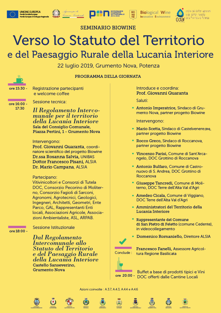 Il progetto BIOWINE è finanziato dal Pon Governance e Capacità istituzionale 2014-2020 – Agenzia per la Coesione Sociale, Fondo Sociale Europeo – Fondo Europeo di Sviluppo Regionale, coinvolge importanti realtà vitivinicole del Veneto, della Campania e della Basilicata e rappresenta un esempio di trasferimento di know-how e di strumenti già sperimentati dalle amministrazioni locali sui temi dell’innovazione tecnologica, della tutela dell’ambiente e del marketing territoriale.