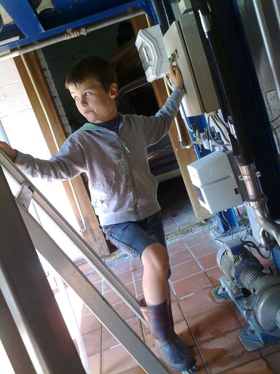 Ci ha accolto Marie Noelle Carlier che stava brassando con l’aiuto di un nipotino piccolo che l’aiutava a chiudere ed aprire valvole, a sistemare scalette ad avviare macchine…siamo infatti in una birreria familiare dove nella gestione sono coinvolte 3 generazioni con Marie Noelle ed il marito capostipiti. C’è anche un ristorante “Il Fourquet”di fronte alla Brasserie gestito dalla famiglia, il figlio di Marie Noelle è lo chef, e ciò completa il quadro di perfetto birrificio rurale, una Farmhouse dei nostri giorni.