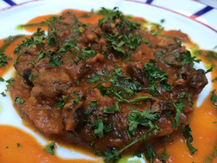 Eppure. Eppure questa è la magia di Parigi. E dei parigini. Che riescono a creare l’atmosfera giusta, da vero bistrot di quartiere, con un paio di salette, qualche pezzo d’antan, un bancone in legno all’ingresso che ricorda l’ambientazione dei romanzi di Simenon. Mise en place semplice, quasi spartana.