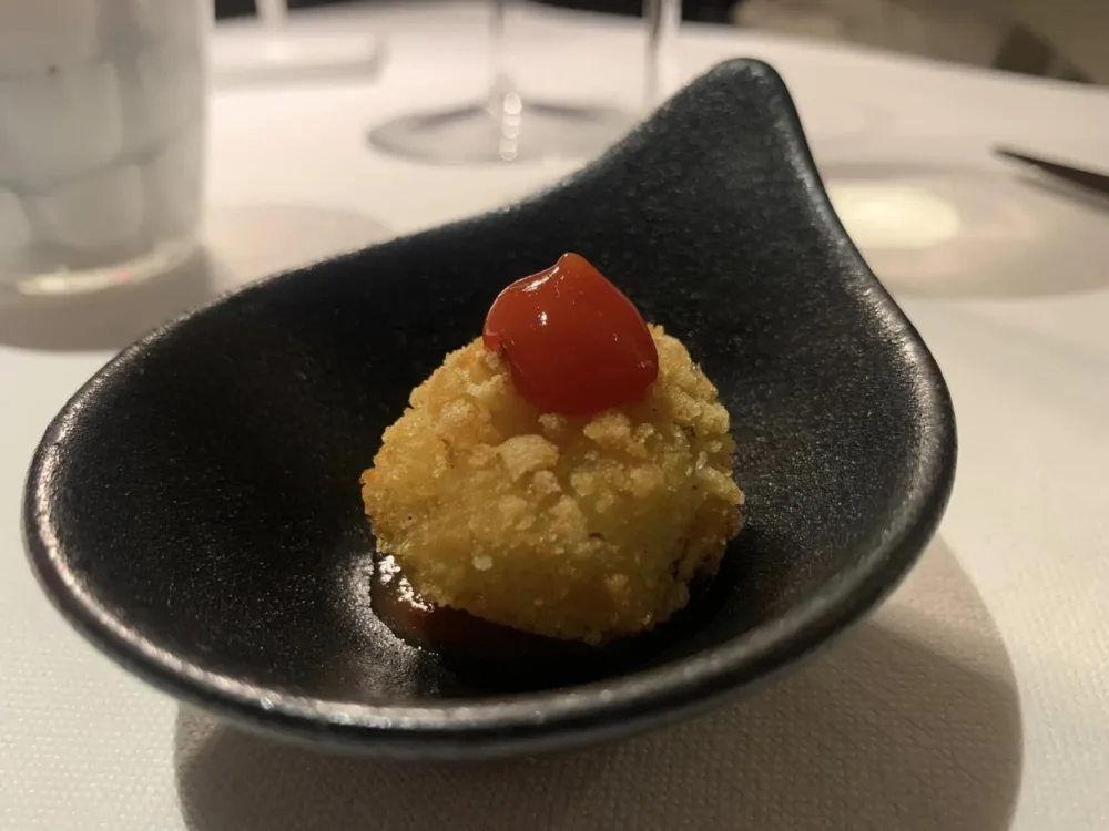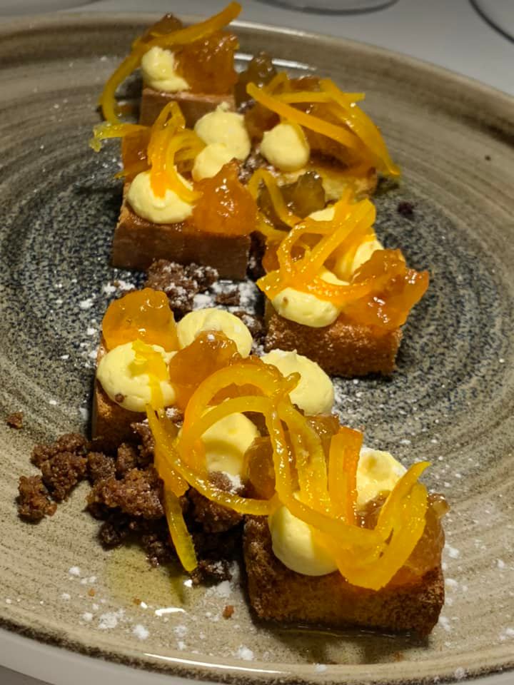 Le sue fusion equilibrate, come la ceviche con elementi campani, uniscono influenze sudamericane alla cucina italiana. Il baccalà si esalta con salsa alla papaccella e oliva disidratata.Molto buono anche il tubetto.