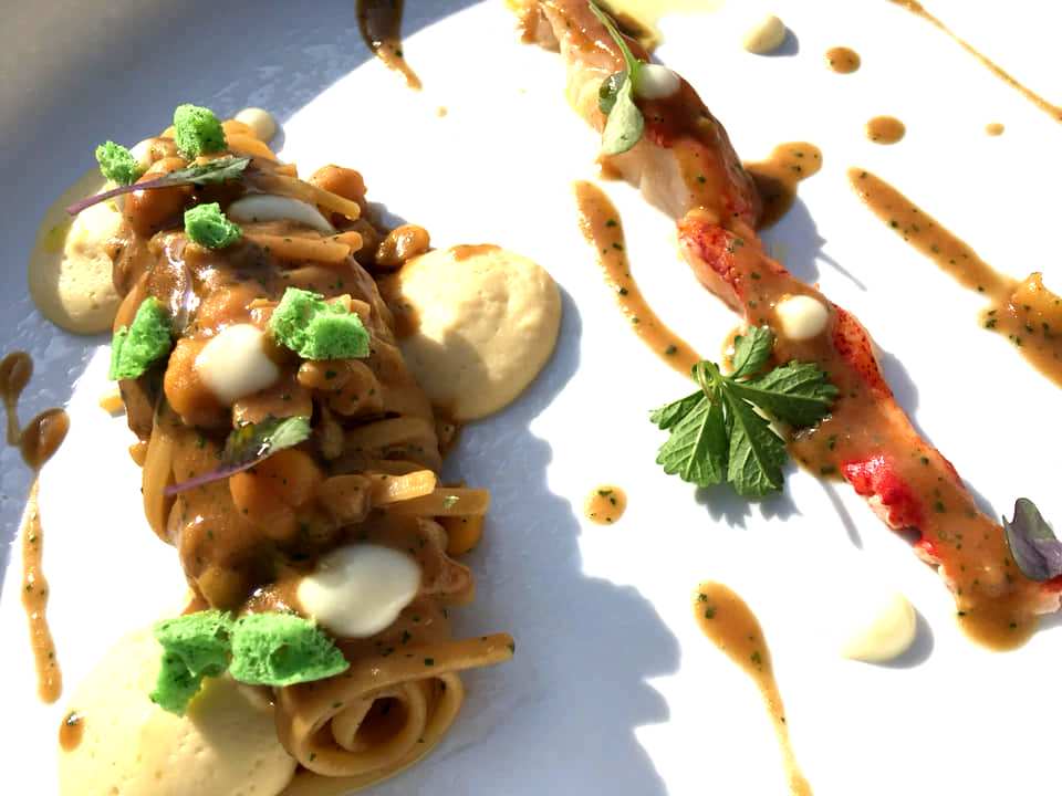 Blu Stone – Linguine con astice e ceci in diverse consistenze