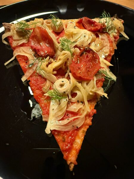 Ricordo molto bene nel 2021 che fece abbastanza scalpore l’inserimento tra le 50 migliori pizzerie italiane, da parte di 50 Top Pizza, di Bob Alchimia a Spicchi a Montepaone, posizione 44 e il premio speciale Performance of the Year – Pastificio di Martino Award. Una visita molto convincente da parte di un nostro ispettore, una seconda verifica ancora migliore della prima e la decisione di puntare su due giovani ragazzi calabresi, Anna Rotella in sala, Roberto Davanzo in arte Bob dietro al forno. Un nome che circolava sicuramente già tra gli addetti ai lavori, ma nel 2021 nessuno aveva messo questa pizzeria al vertice del movimento italiano, lo abbiamo fatto noi di 50 Top Pizza, convinti ed orgogliosi della nostra scelta. Una premessa doverosa e assolutamente non autocelebrativa, perché in questo mondo dei social così veloce e frenetico si tende a dimenticare quasi tutto troppo in fretta. Partiamo dal giudizio finale che è molto più che convincente, entusiasmante a tratti che mette questa pizzeria al vertice del movimento globale della pizza, posizione 38 in 50 Top Pizza World 2025 e posizione 16 in 50 Top Pizza Italia 2025 con ancora dei margini di crescita e un merito enorme, quello di mettere il proprio territorio al centro dell’intero progetto.