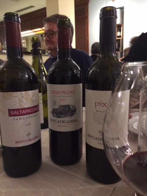 Il Rosso Piceno DOC 2012 14.5% vol. composto da Sangiovese e Montepulciano profuma di buccia d’arancia e spezie, pepe e chiodi di garofano; il tannino un po’ rude è in evidenza così come l’alcol ma il ricordo di frutta sottospirito in bocca gli rende facile la beva.