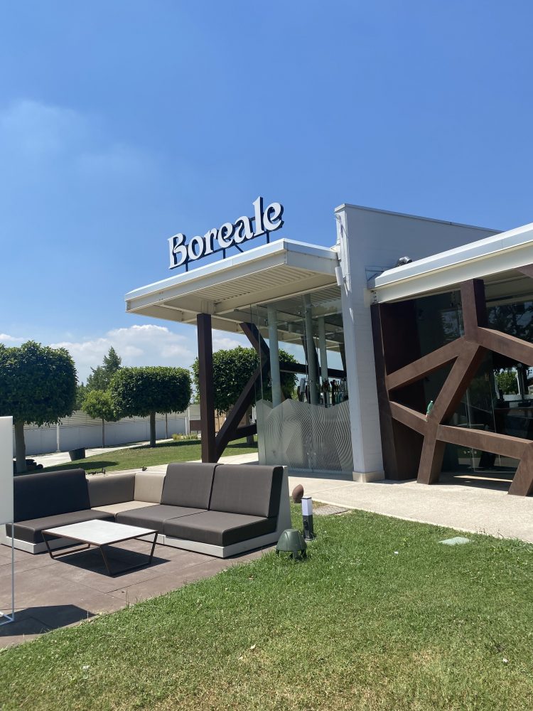 La cornice che ospita Boreale è una struttura architettonica moderna, costruita con materiali come il corten e il vetro, che evidenziano gli spazi ben calibrati tra vari open space e gli arredi dai colori che tendono al neutro e al verde.
