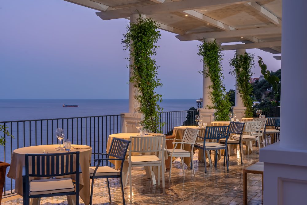 Con 29 stanze e 16 suite, spiaggia privata, piscina di acqua salata e bar, sono ben tre i ristoranti: “Alici”, impreziosito da un’opera realizzata dal maestro Liguori, “La Libreria” aperto solo la sera ed il Beach Club Restaurant. A completare la proposta F&B il Terrace Bar dove, oltre ad una selezionata carta drink, si può godere di un’offerta food più veloce.