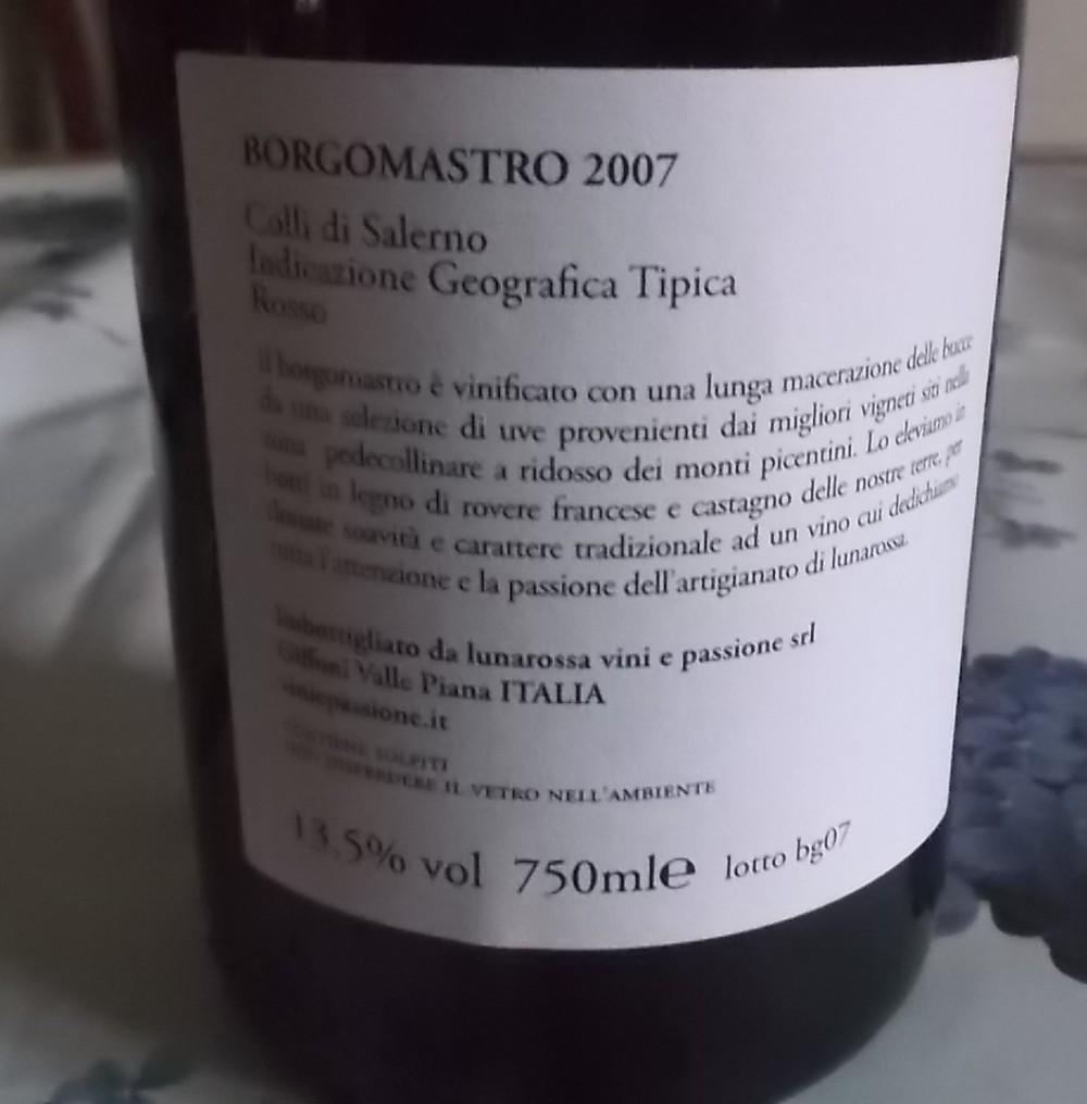 Controetichetta Borgomastro Colli di Salerno Rosso Igt 2007 Lunarossa