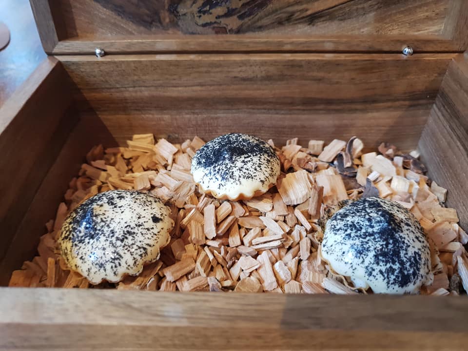 Torna l’uso di una proteina animale con il raviolo ripieno di pomodoro confit, ananas e camomilla con tartare di astice. Pasta ben fatta, gusto che si estende nel panorama dell’acido fresco e fruttato controbilanciata anche dalla dolcezza del crostaceo.