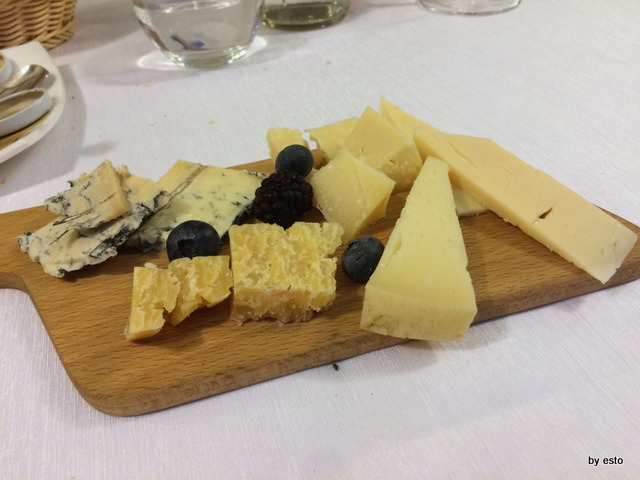Anche con i formaggi: un carmasciano, un parmigiano da vacche rosse trentasei mesi, un provolone del monaco, un auricchio ultrastagionato e uno zola.