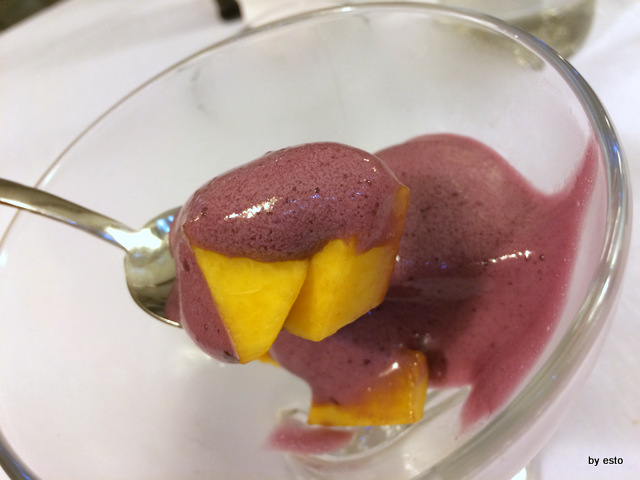 Botto finale con la percoca gialla del Vesuvio affogata nel Gragnano reso spuma.