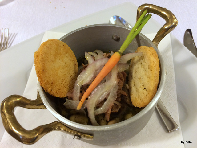 Tonno di chianina, fagioli cannellini del Vesuvio e cipolla ramata di Montoro all’insalata.