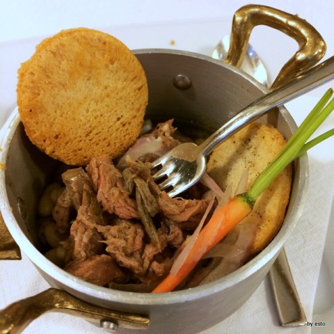 Eppure sono pezzi, scamone e colardella, di chianina cotti a bassa temperatura e conservati sotto olio.