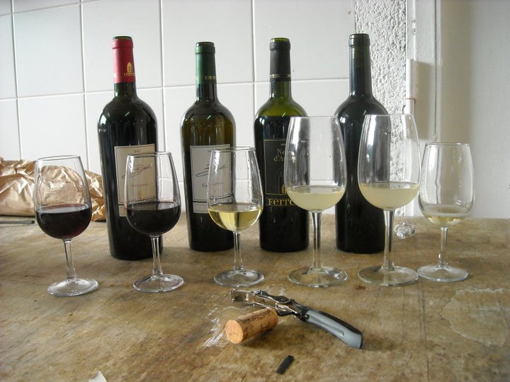 Mi rendo conto di trovarmi, a tutti gli effetti, in un vero e proprio “Chateau Garage”, dove ciò che conta davvero è la qualità delle uve in lavorazione e del vino che si vuole ottenere, avendo come unico monito, quello di assecondare il più possibile Madre Natura. Il vino che mi ha incuriosito di più è il bianco della linea denominata “Brasi”, un catarratto in purezza affinato in botti di castagno. Questa linea (che comprende anche un rosso da nero d’Avola in purezza, sempre affinato in botti di castagno) costituisce la punta di diamante della pruduzione aziendale e prende il nome dal termine dialettale con cui veniva chiamato un antenato della famiglia Ferreri, tal “Biagio Li Causi (detto Brasi) viticultore per passione, il cui spirito vive in ogni vino Ferreri”, come si legge nella brochure dell’azienda. Da una produzione media di 90 quintali/ettaro, dai vigneti coltivati in c.da Buturro (Comune di Santa Ninfa, TP) su terreni argillo-calcarei ed allevati a Guyot, si ottiene questo limpidissimo catarratto in purezza dal colore giallo paglierino carico con riflessi verdognoli e di grande consistenza.