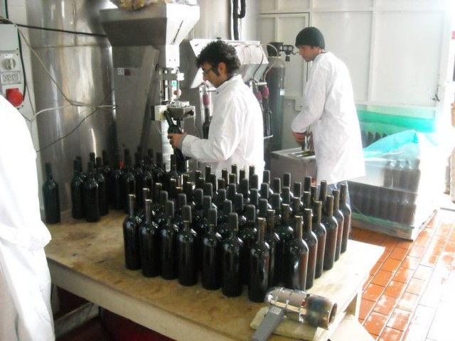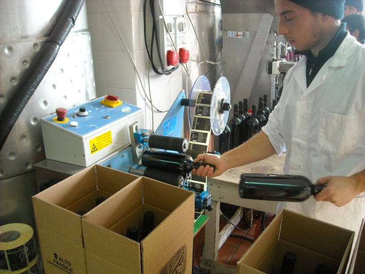 Nonostante le spesse pareti in tufo sono in grado di assicurare quel microclima richiesto da una bottaia/barricaia, il vano è provvisto di idoneo impianto di condizionamento appeso al soffitto. Ad occhio e croce, nella piccola bottaia trovano alloggio circa 60 piéce, tra rovere francese e legno di castagno. Queste ultime rappresentano il “leitmotiv” della politica aziendale in fatto di “elevazione”, ossia la singolare ed encomiabile scelta di limitare l’uso della famigerata barrique bordolese da 225 litri privilegiando le tradizionali botti di castagno di antica memoria, tutte realizzate da un mastro bottaio del marsalese. Entrando nei locali della cantina noto la piena operatività e mi scopro ad osservare con interesse gli addetti impegnati nell’imbottigliamento del loro cabernet sauvignon in purezza non barricato.