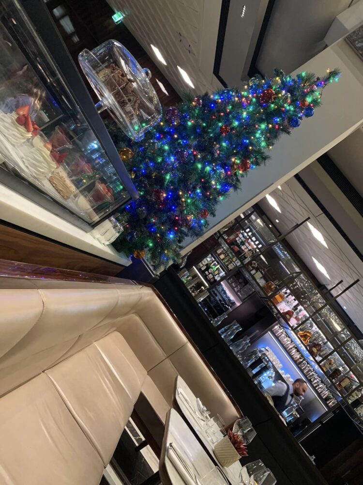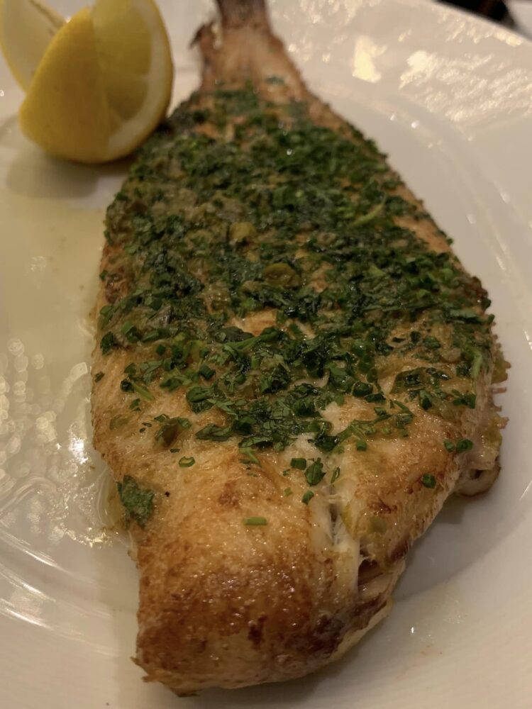 Completano il quadro il bar per i cocktail e una vetrina dei dolci, tutti classici. I prezzi non sono economici, ma comunque abbordabili, dipende molto dal percorso che scegliete nell’ampio e variegato menu che comprende anche alcuni piatti di pasta ben eseguiti. Ma dire non altrettanto ben mangiati visto che un nostro vicino di tavola ha affronatto gli spaghetti con forchetta e coltello. (emoticon che piange).