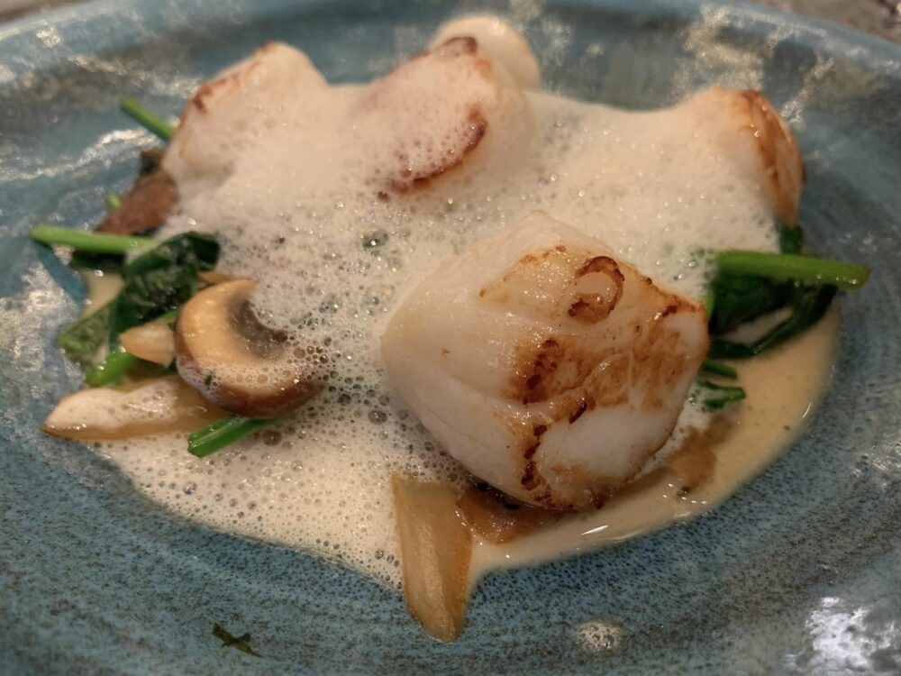 Noi siamo andati sul classico, vi dicevo, come entreè il grande piatto di crudi (a 50, a 90 e a 160 euro) , a seguire le Saint Jacques secondo la ricetta della Normandia, con burro, funghi e spinaci e la sogliola alla mugnaia in versione mediterranea anche se cotta nel burro. Entrambi i piatti molto ben eseguiti e appaganti.