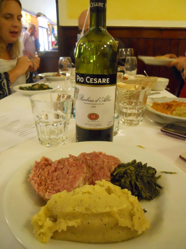 Per secondo baccalà in rosso, cioè al pomodoro, e cotechino con contorno di spinaci ai quali abbiamo abbinato il Barbera d’Alba 2009 Pio Cesare.