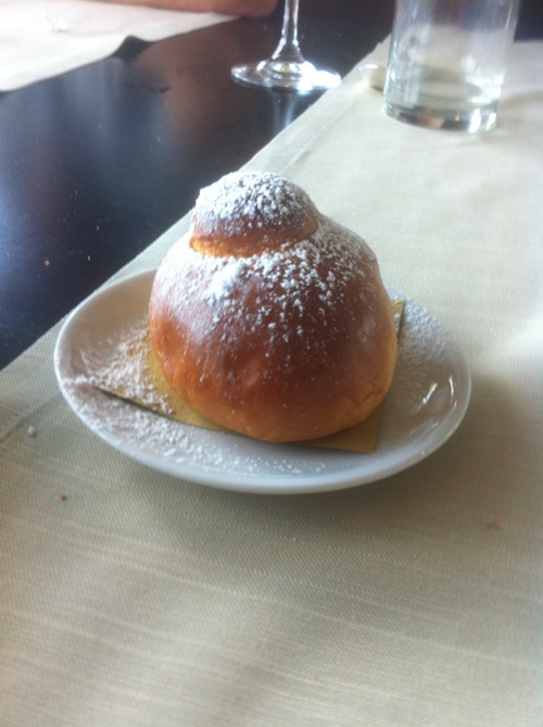 Ad Agropoli, una brioscia sofficissima con una crema pasticcera altrettanto squisita, attenzione che provoca dipendenza, sennò non ti spieghi che ti trovi a fare alle ore 23 Scafati-Agropoli per prenderne un paio (una la mangi subito, una a colazione il giorno dopo).