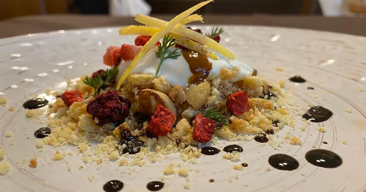 L’ingrediente principale è lo yogurt di latte caprino, servito su un crumble di pasta-biscotto. Il tutto è accompagnato da una riduzione di Caffè Borbone – Miscela Blu.