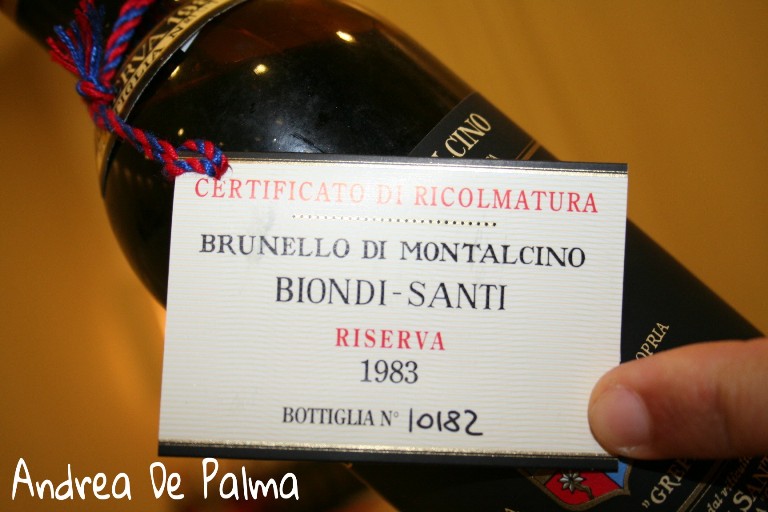 Il Brunello 1983 Riserva, ci dà il la sciabolata finale, asfaltando le nostre personalità e rendendoci, muti e succubi del pregiato nettare. Anche qui pietra focaia ma associato a pasta di olive, erbe officinali e liquirizia per dei profumi che passano al cuoio e al frutto senza mai esaurirsi; ma è al palato che sfoggia dei tannini spettacolari, ancora troppo vivi e uniformi, le note agrumate rinfrescano un sorso intriso di succulenza e piacevolezza unica, sembra un vino ancora troppo giovane, sottolineata da sensazioni saline che continuano a solleticare il palato. Insomma, un vino con un finale che spiazza tutti e ci lascia a bocca aperta.