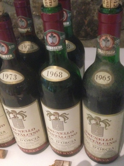Ti danno una visione prospettica che aiuta moltissimo a memorizzare, a capire l’evoluzione degli stili, dell’agronomia, ovviamente del vino stesso e in fondo anche della personalità di chi li produce. Ed è di gran conforto, durante l’assaggio, avere la presenza fisica, ma discreta, di chi le bottiglie in degustazione le ha fatte tutte o quasi e quindi per ogni annata riesce a rievocare ricordi, aneddoti, esperienze da raccontare per mettere meglio a fuoco l’insieme. Nonché ad assecondare le domande non sempre compiacenti dei giornalisti.Ho avuto questa fortuna quando, tempo fa, sono stato invitato da Francesco Marone Cinzano a Col d’Orcia, una delle aziende storiche montalcinesi, per una verticale di Brunello e Brunello riserva dal 1965 al 2010. Un‘opportunità fuori da comune sia per l’amplissima forcella cronologica tra le annate, sia per il fatto, ancora più raro, che tutte le annate proposte sono ancora in commercio.