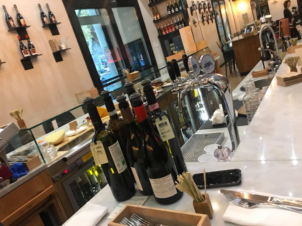 La formula è davvero easy. Ogni giorno un lavagnetta sulla strada annuncia il menu quotidiano, c’è anche una piccola carta con piatti fissi, noi abbiamo preso il midollo alla brace e la tartare di capriolo. Si entra, si mangia un piatto, un bicchiere e via. O, viceversa, si sceglie la bottiglia e poi si passa al cibo, magari semplicemente i formagggi di pecora irpini di Carmasciando.