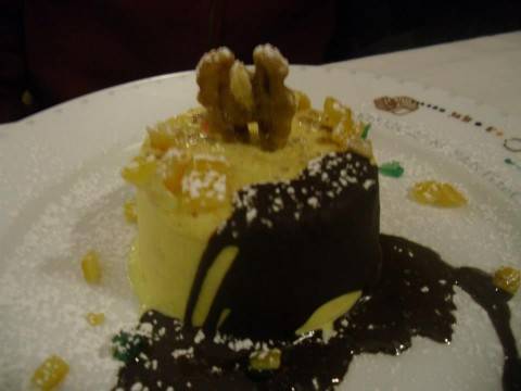 E Fabiana che non c’è, quindi niente torta Antica Roma ma solo – si fa per dire – un semifreddo alla crema con canditi e cioccolato e una mousse al cioccolato.