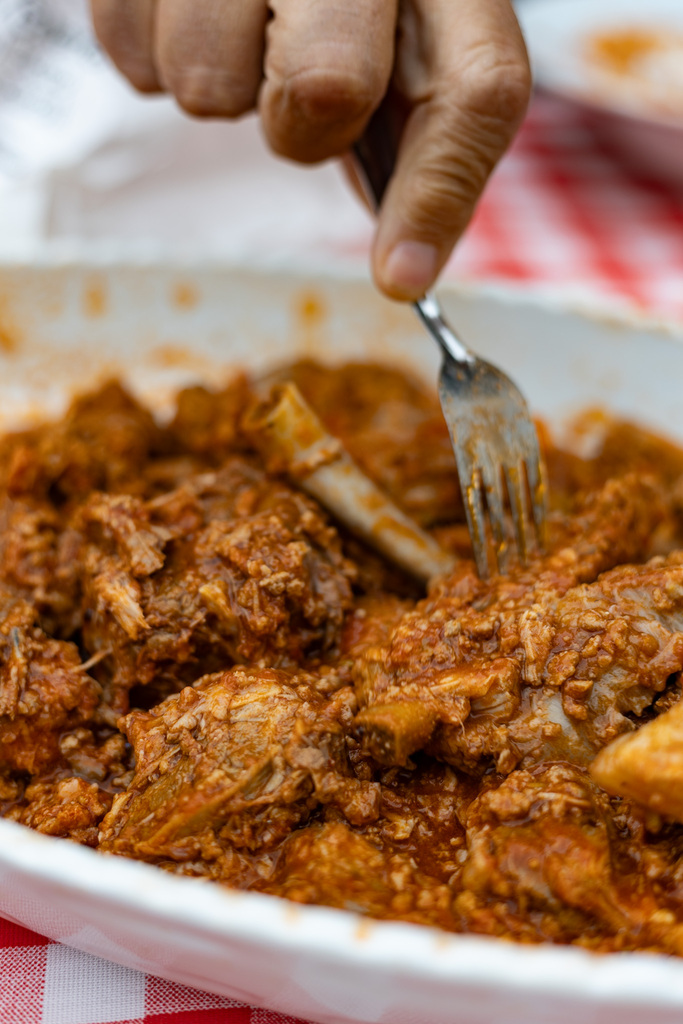 Poi il tempo si è fatto lento, come la cottura del ragù cilentano, un sugo che racconta domeniche, famiglie, tradizioni. A seguire, carne nel sugo, salsiccia e friarielli, verdure dell’orto: sapori autentici, di quelli che non hanno bisogno di presentazioni.