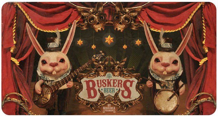 Le etichette Buskers sono bellissime in stile punk, e da Mirko professionista del settore bisognava aspettarselo, soggetti originali, spesso animali umanizzati, creati da un creativo artista spagnolo Felideus.