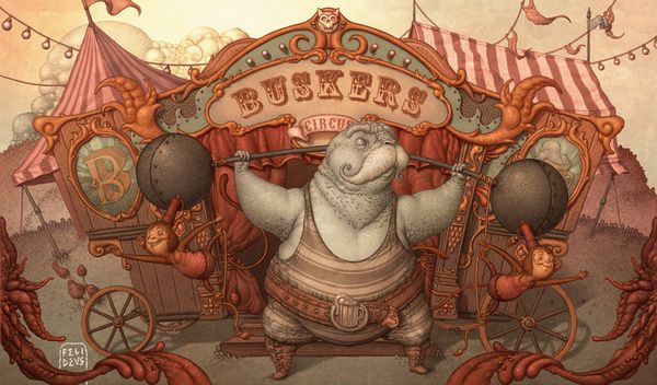 L’idea di andare a fare birra con una propria ricetta, senza un impianto, itinerante dai vari birrifici della penisola è nata poco più di un anno fa…Mirko voleva una birra con il marchio del suo locale e propose l’idea a Moreno Ercolani di Olmaia, l’unione delle due menti stava partorendo una sorta di birra di Moreno rinforzata, quando complice qualche consiglio markettaro di Leonardo Di Vincenzo, ecco che nasce Ecstasy of Gold, da un pezzo di Ennio Morricone, una Golden Ale a 5,5 °alc., malto Pils e 5 luppoli per un totale di 70 IBU, prodotta da Olmaia , la prima della lunga serie delle Buskers Beer, 10 hl la prima produzione e a distanza di un anno è già riprodotta 4 volte sempre da Olmaia e naturalmente tutta esaurita…50% in fusti e 50% in bottiglia .