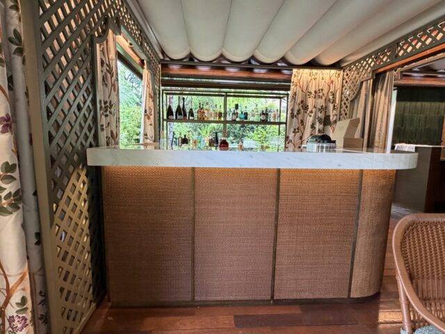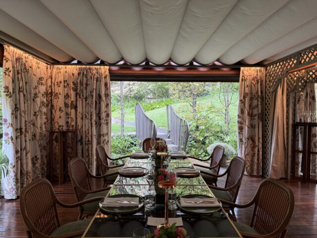 Pizza Bar prende vita nel Gazebo del Bvlgari Hotel Milano, immerso nel giardino tra alberi di ciliegi giapponesi e glicini. Un luogo intimo, dove il designer dialoga con la natura e accoglie fino a 40 ospiti tra interno ed esterno. Gli arredi in materiali naturali, caratterizzati dall’arte dell’intreccio, sono firmati dalla storica azienda Bonacina 1889, con pezzi iconici della collezione outdoor, tra cui il “Clubino Dining Table Q Custom Outdoor”, firmato da Mario Bonacina e Renzo Mongiardino (1979), e la “1925/5 Dining Chair Outdoor”, disegnata da Mario Bonacina (1980). Dettagli che completano l’esperienza, come il bancone bar, realizzato su misura e rivestito in tessuto di midollino nella tonalità tabacco. I piatti verde e terracotta, sono fatti a mano in Indonesia, mentre le stoviglie in argento sono firmate Bulgari e il tovagliato porta la firma sartoriale di Rivolta Carmignani 1867.