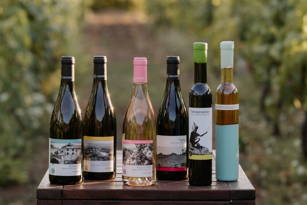 Questa visione attraversa anche il modo in cui Cà du Ferrà si presenta. Le etichette non cercano seduzione immediata: preparano lo sguardo. Superfici materiche, segni netti, fotografie che sembrano trattenere il respiro. Raccontano una Liguria verticale, aspra e luminosa insieme. Sono etichette che non spiegano, ma chiedono tempo, proprio come il paesaggio da cui nascono.