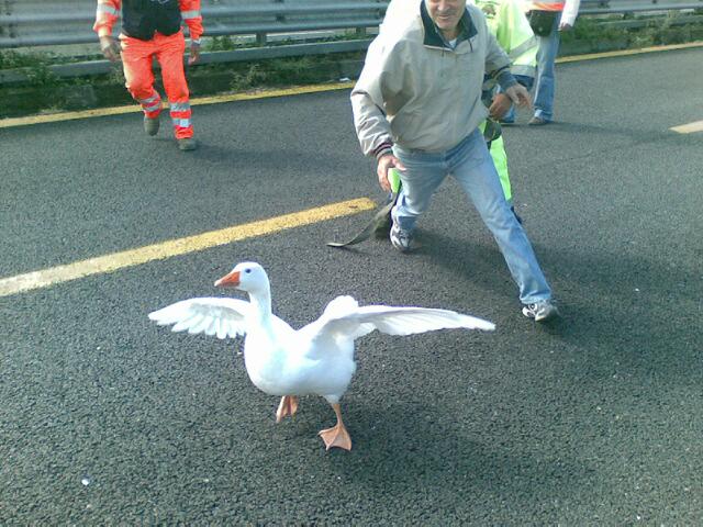 L’oca dribbla gli inseguitori (Foto Pigna) 29/9/2010 Torna a: Caccia all’oca in autostrada, si blocca il traffico L’oca dribbla gli inseguitori (Foto Pigna)Successiva →