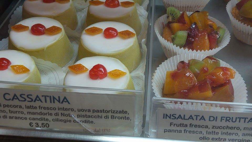 Lo stesso vale per quella di gelsi, anche questi introdotti dagli arabi, intensa nel sapore mentre meravigliosamente delicata è la granita di fragole. Inutile ammettere che i dolci classici siciliani sono quelli che più attirano e dopo le granite è la volta del cannolo di una raffinatezza unica per la leggerezza della ricotta ben lavorata come della cialda sottile e fragrante. La cassatina mi ha lasciata letteralmente senza parole: anche qui la ricotta è lavorata con finezza e i toni della dolcezza sono molto delicati, i colori quasi sbiaditi perché lasciati al naturale.