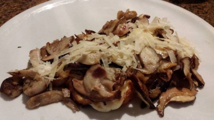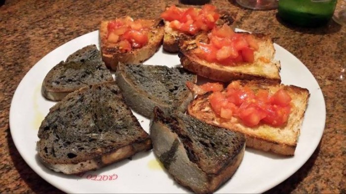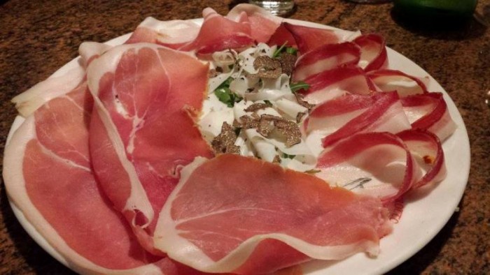 A seguire proviamo la scamorza alla piastra con tartufo e funghi porcini, salumi (lardo con tartufo di Caggiano su letto di rucola, prosciutto crudo e speck, tutti di produzione propria) e due pizze: la Pizza Nera e una con salsiccia e cacioricotta cilentano.