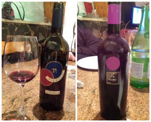 Hanno accompagnato la cena due vini: il Colli Orientali del Friuli doc Pignolo 2008 de La Tunella e l’Aglianico Irpinia doc Dal Re 2012 di Feudi di San Gregorio.