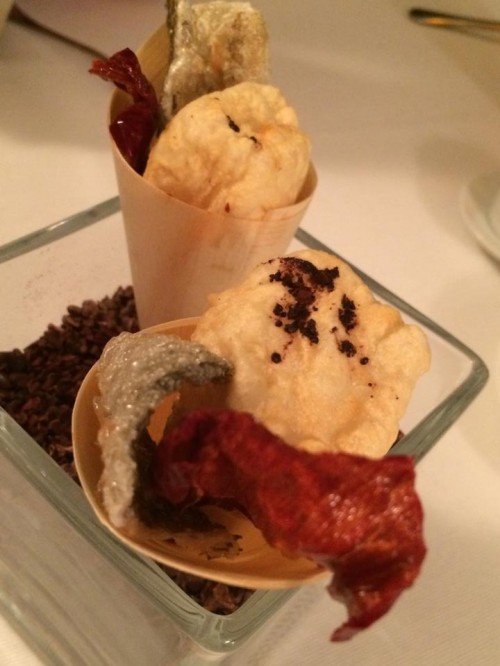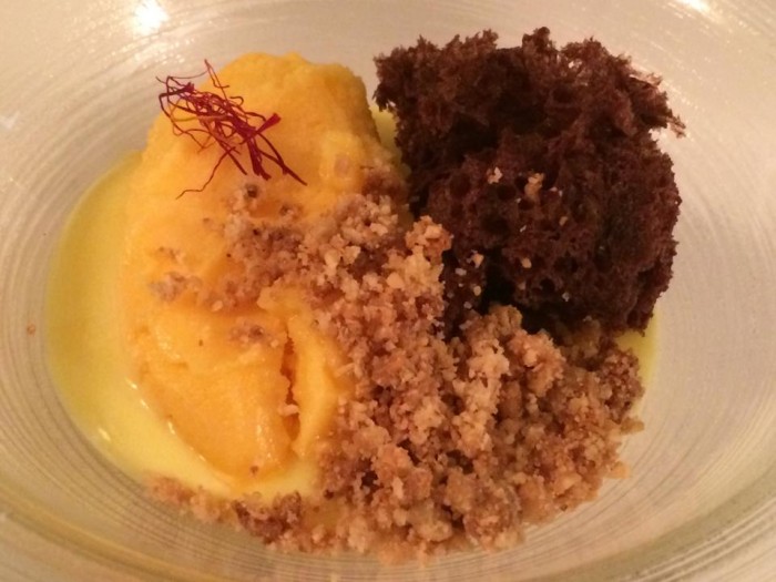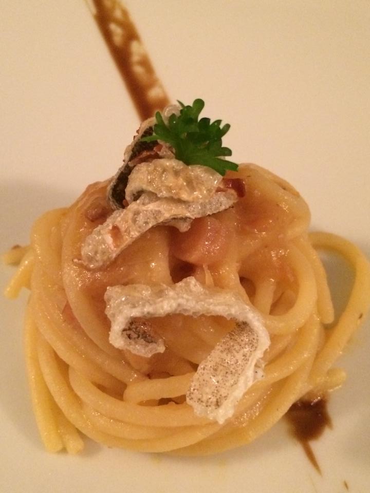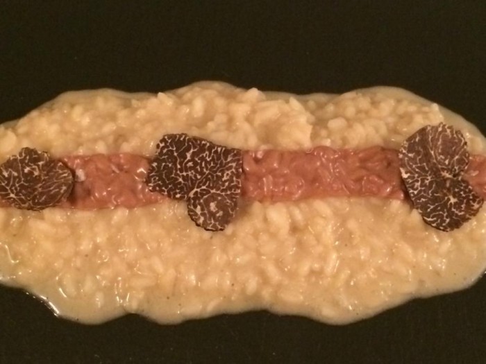 Lo spaghettone è centrato, saporito e lungo mentre il risotto, ben eseguito è spiazzante per la nota dolce che domina il piatto sino ad annullare il tartufo.